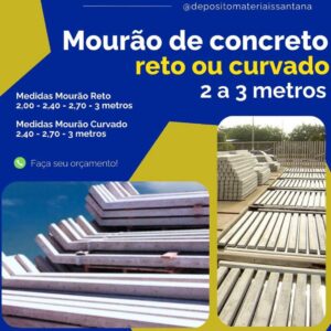 Mourão de concreto reto de 2,00 até 3,00 metros Ideal para cercas