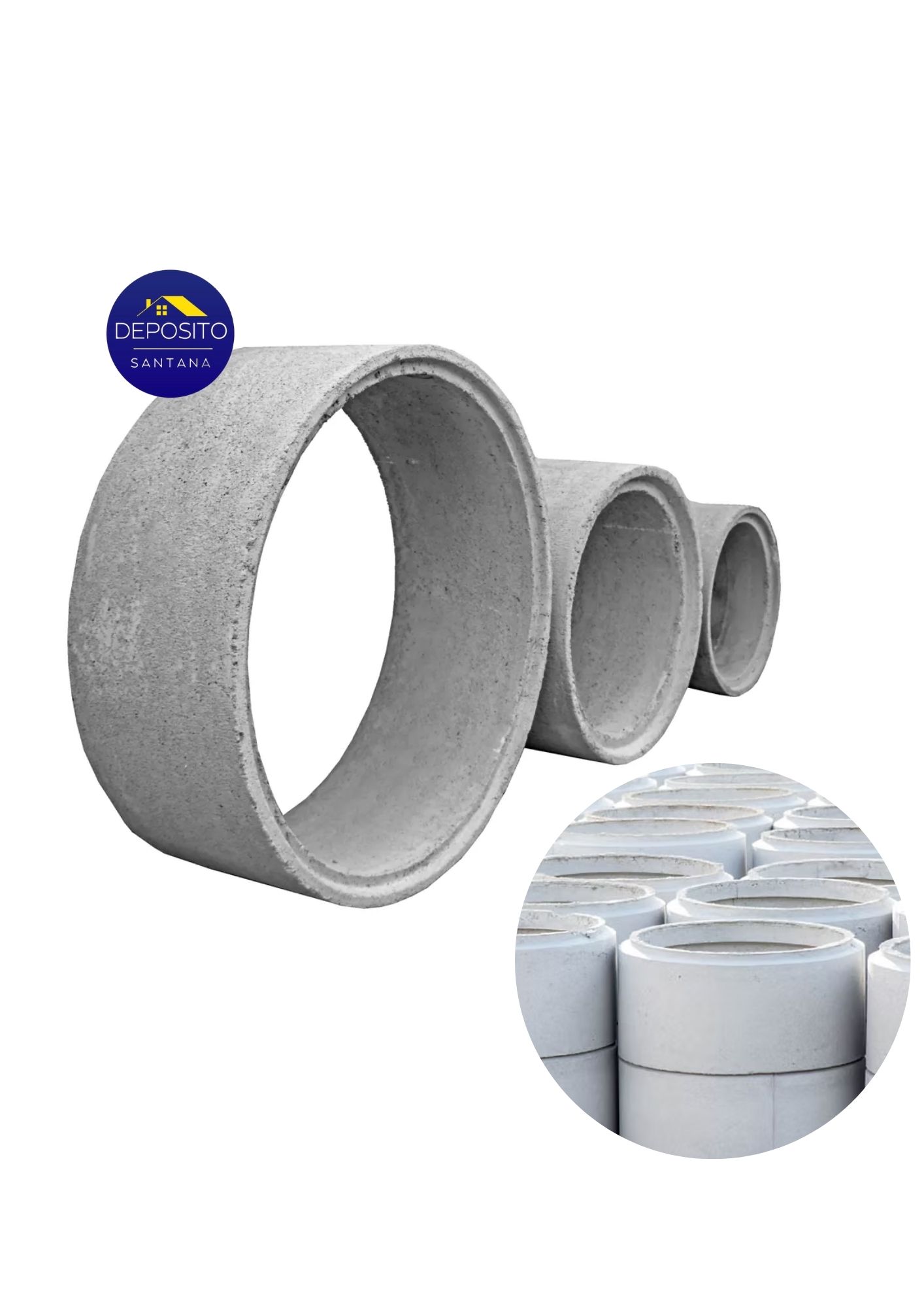 Fabricado em concreto vibrado de alta resistência, este anel é projetado para ser empilhado verticalmente, criando uma estrutura modular e estanque. O sistema de encaixe [Macho e Fêmea] (ou Ponta e Bolsa) entre as peças garante um alinhamento perfeito e uma vedação eficiente, essencial para o bom funcionamento do sistema de saneamento.