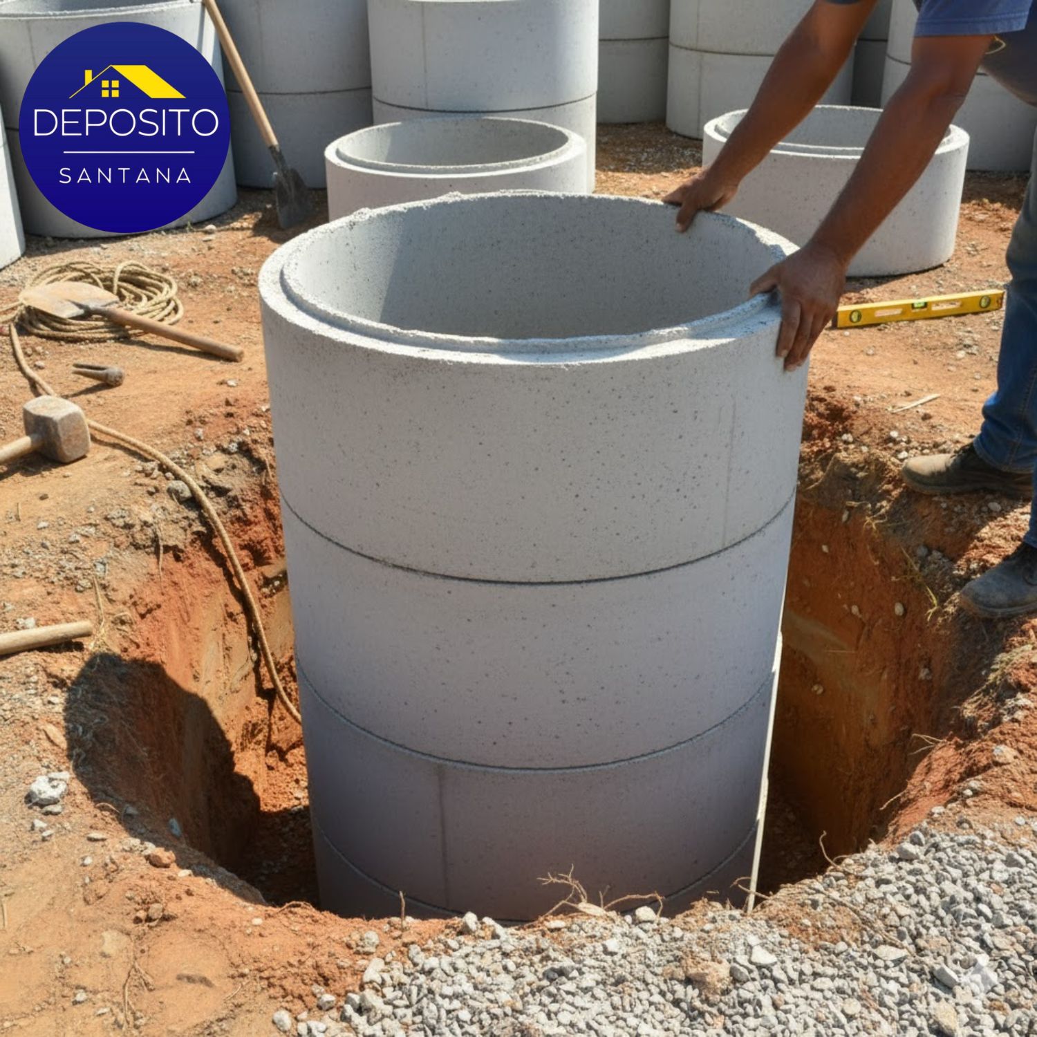 O uso de anéis pré-moldados reduz drasticamente o tempo de obra, elimina a necessidade de formas de madeira e garante a resistência necessária para suportar a pressão do solo.